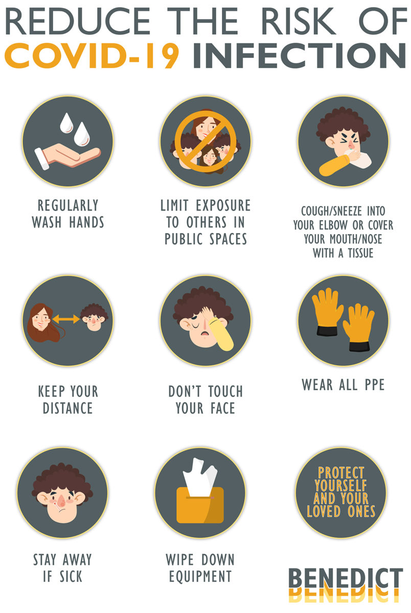 We ask for your patience and kindness as we all work together during this time. If you feel unwell at any time, we respectfully ask that you do not enter a Benedict facility or make physical contact with a Benedict representative. We will continue to follow all advice from the relevant authorities.